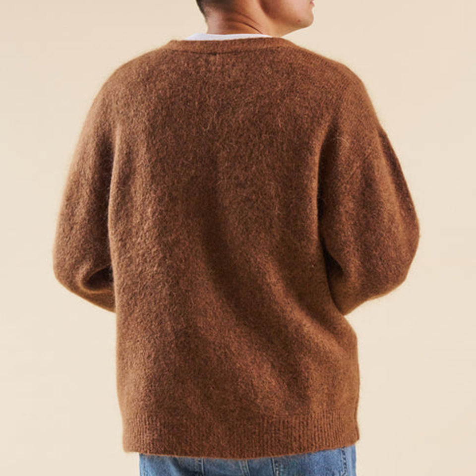 Wholesale Custom Fashion Fuzzy Mohair Blend Knit Men's Sweaters Winter Solid Warm V Neck Cardigan Button-Up Oversize Sweater
