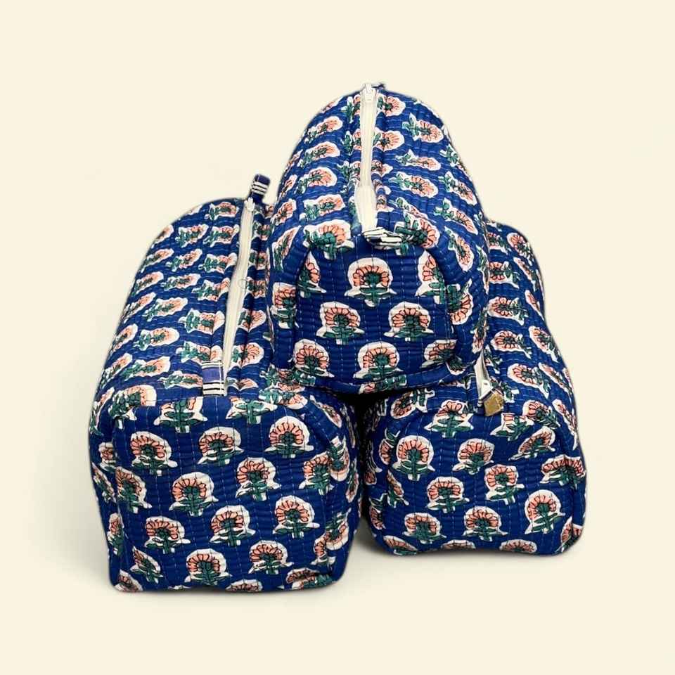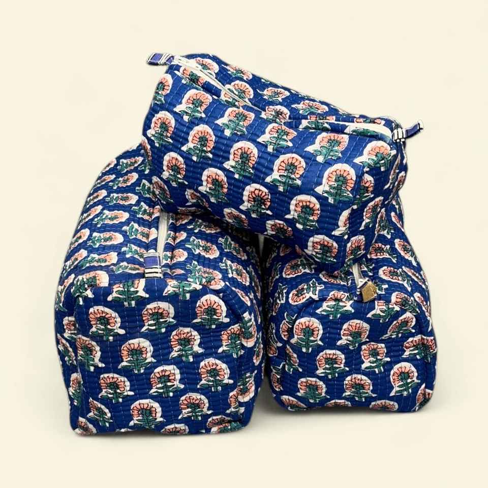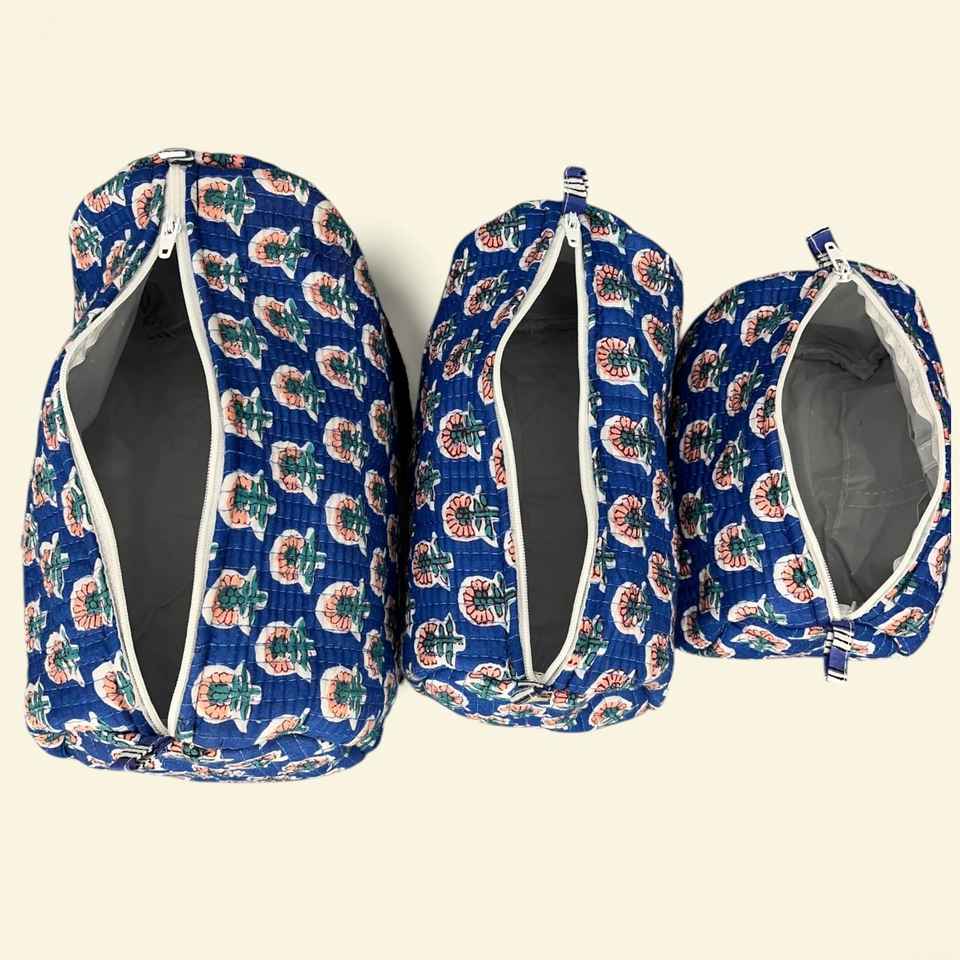Wholesale Custom Floral Quilted Toiletry Bag Set 3Pcs Waterproof Lining Cotton Makeup Cosmetic Bag Manufacturer