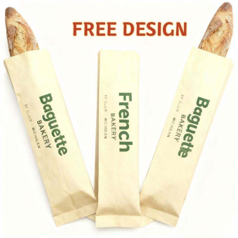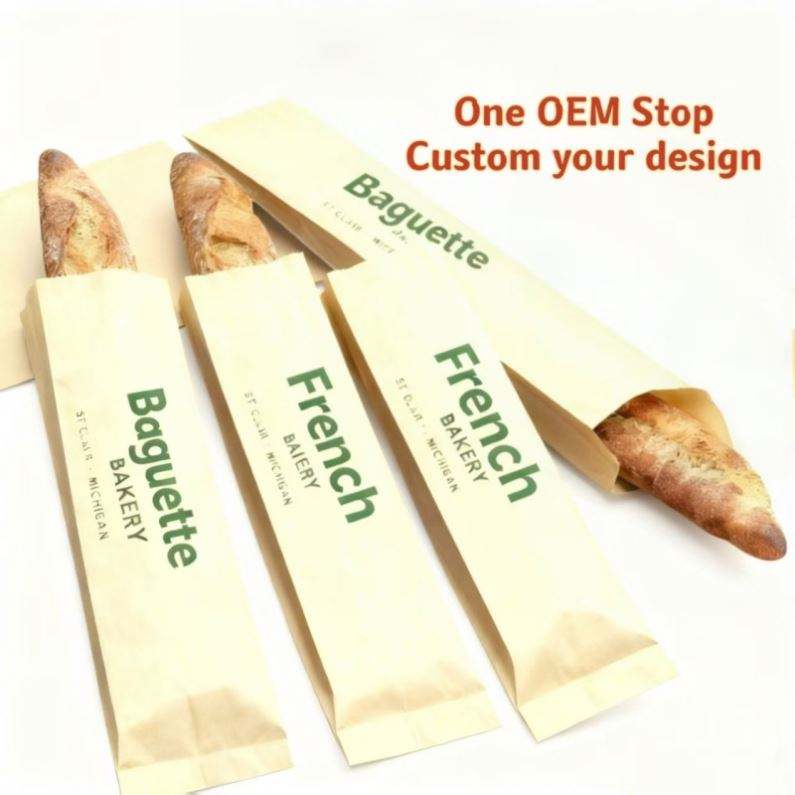 Wholesale Custom Food Grade Greaseproof Brown Kraft Paper French Packaging Long Baguette Bread Cake Bags