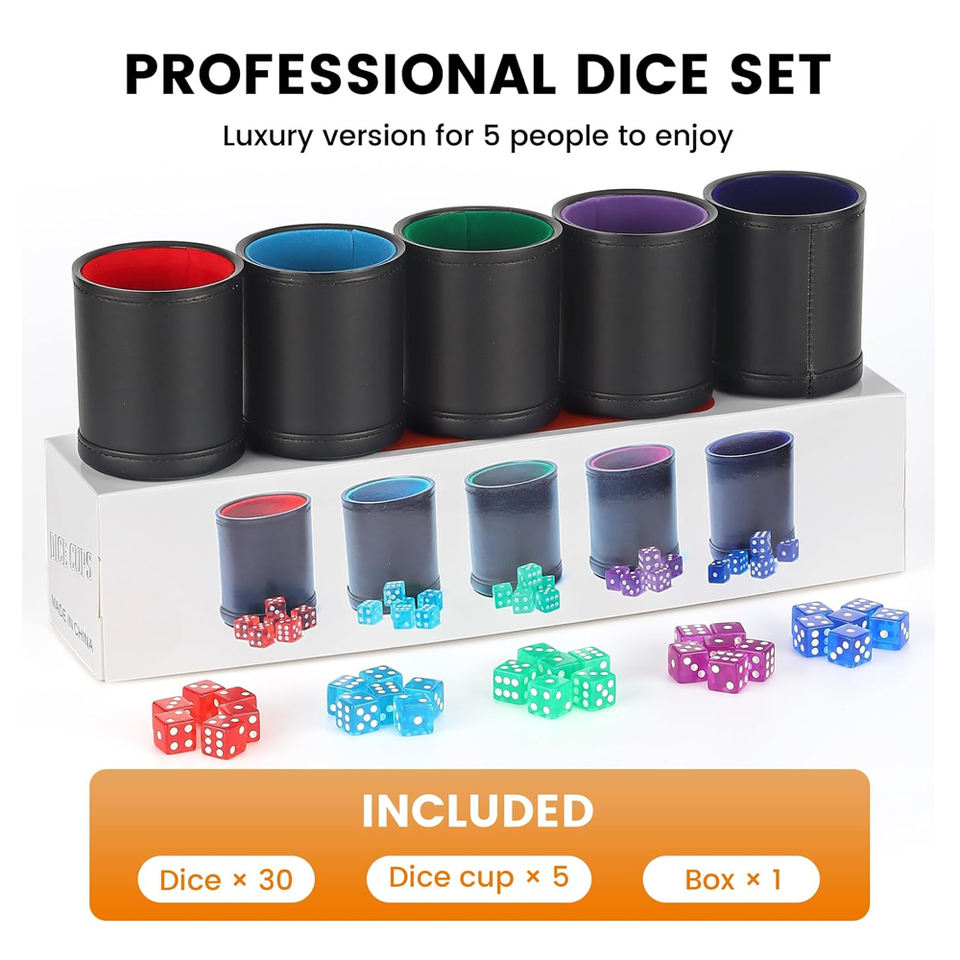 Wholesale Custom Gambling Leather Shaker Pu Dice Cup Felt Lined Professional Dice Cup With 6 Dice Quiet for Game