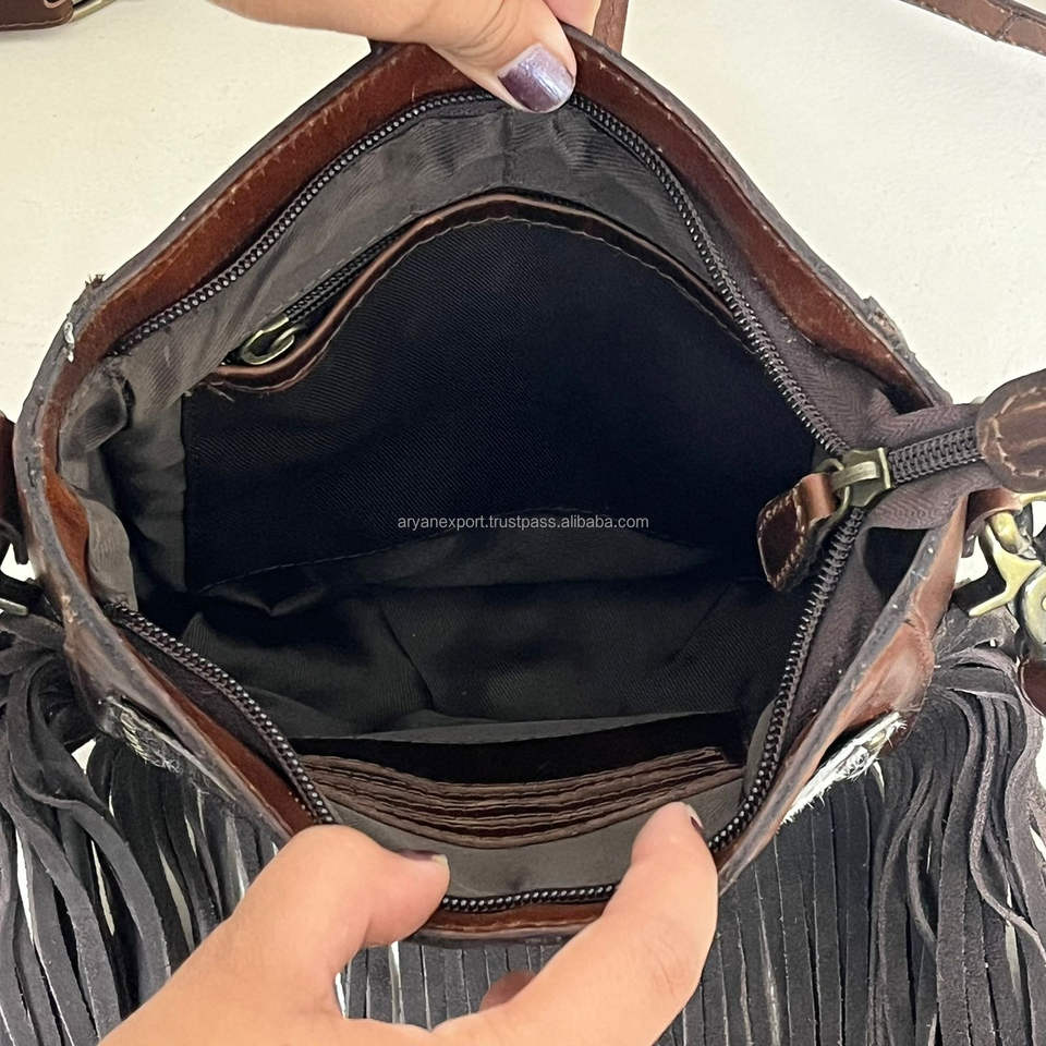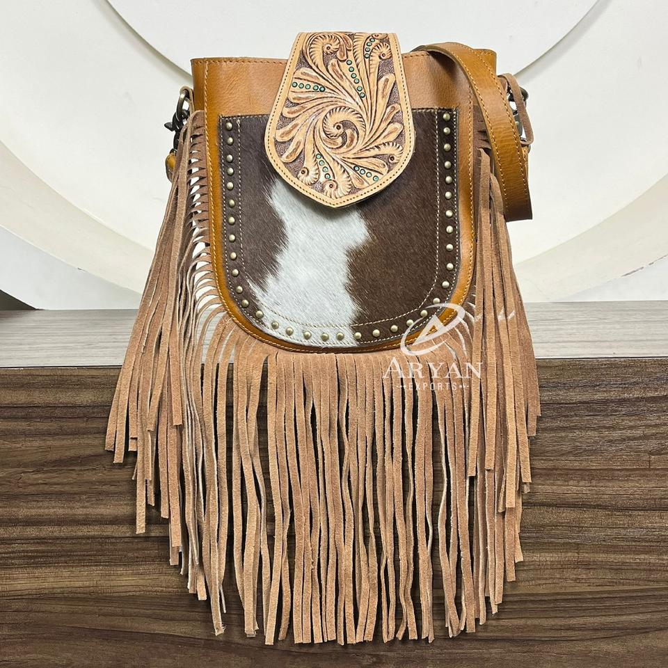 Product name:Hand Tooled Cowhide Leather Fringe Crossbody Bag
