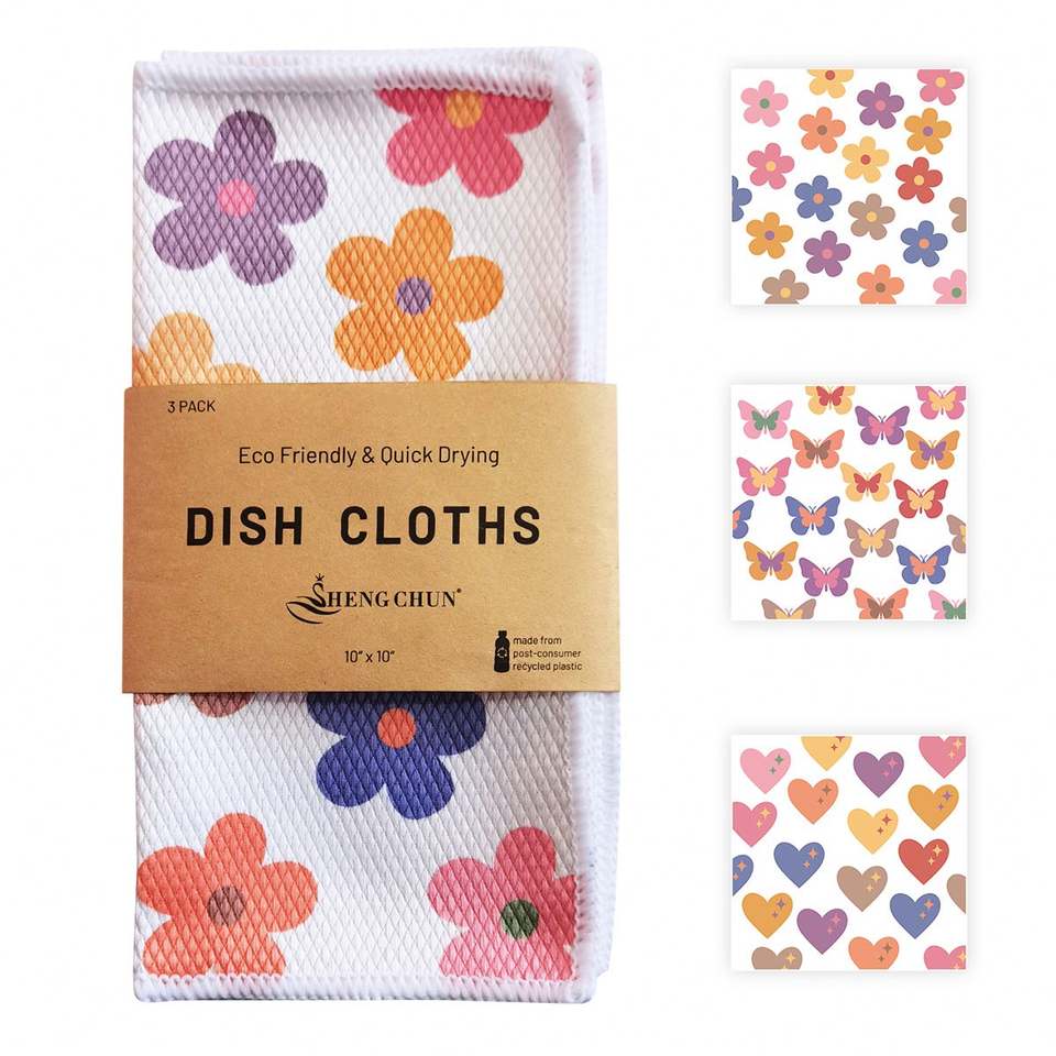 Wholesale Custom Glass Mirror Screen Flower Butterfly French Terry Printed Cute Towels Window Cleaning Cloth