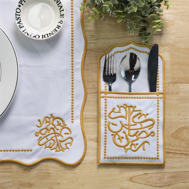 Wholesale Luxury Banquet Cotton Monogrammed Embroidered Edge Cutlery Pre Folded Napkin with Cutlery Pocket for Event Managers
