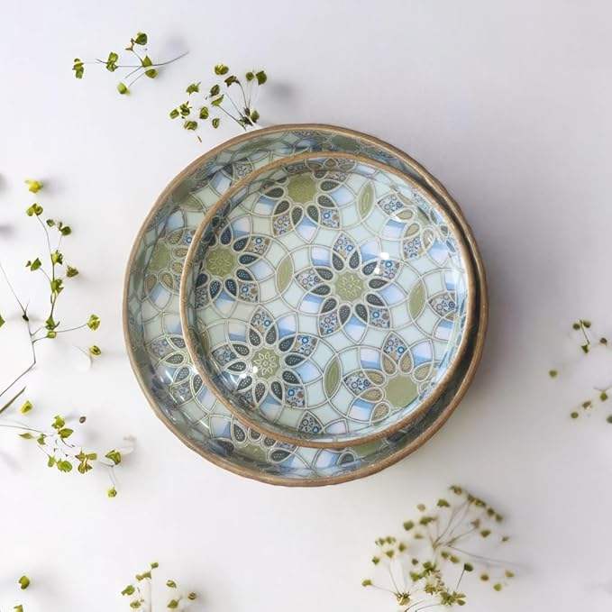 Wholesale Custom Handmade MDF Wood Serving Trays Enamel Coated Resin Decorative Kitchen Dining Trays in 7x7 9x9 Inches Sizes