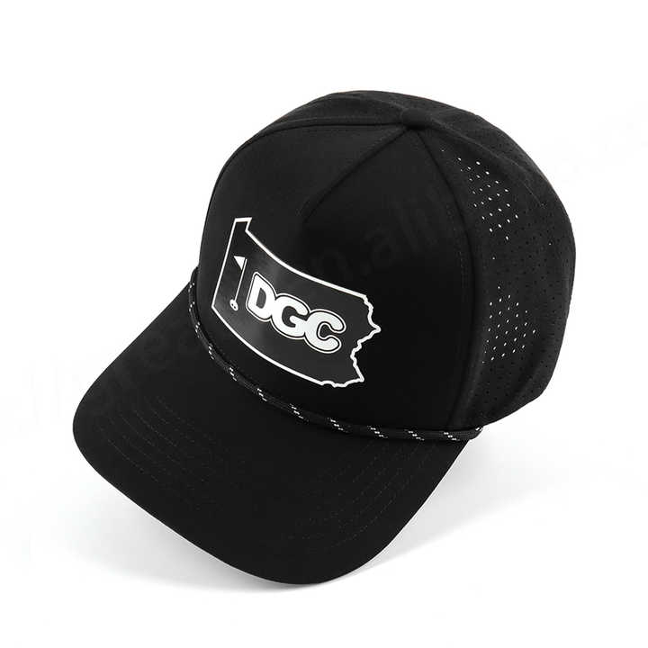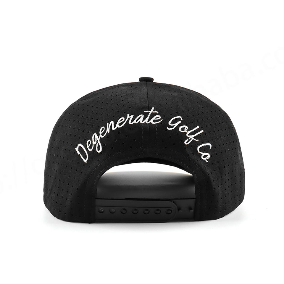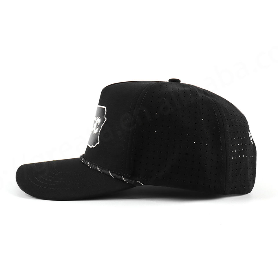 Wholesale Custom Heat Transfer Printing Logo 5 Panel Sports Runner Hat Laser Cut Hole Perforated Hat Black Rope Baseball Cap