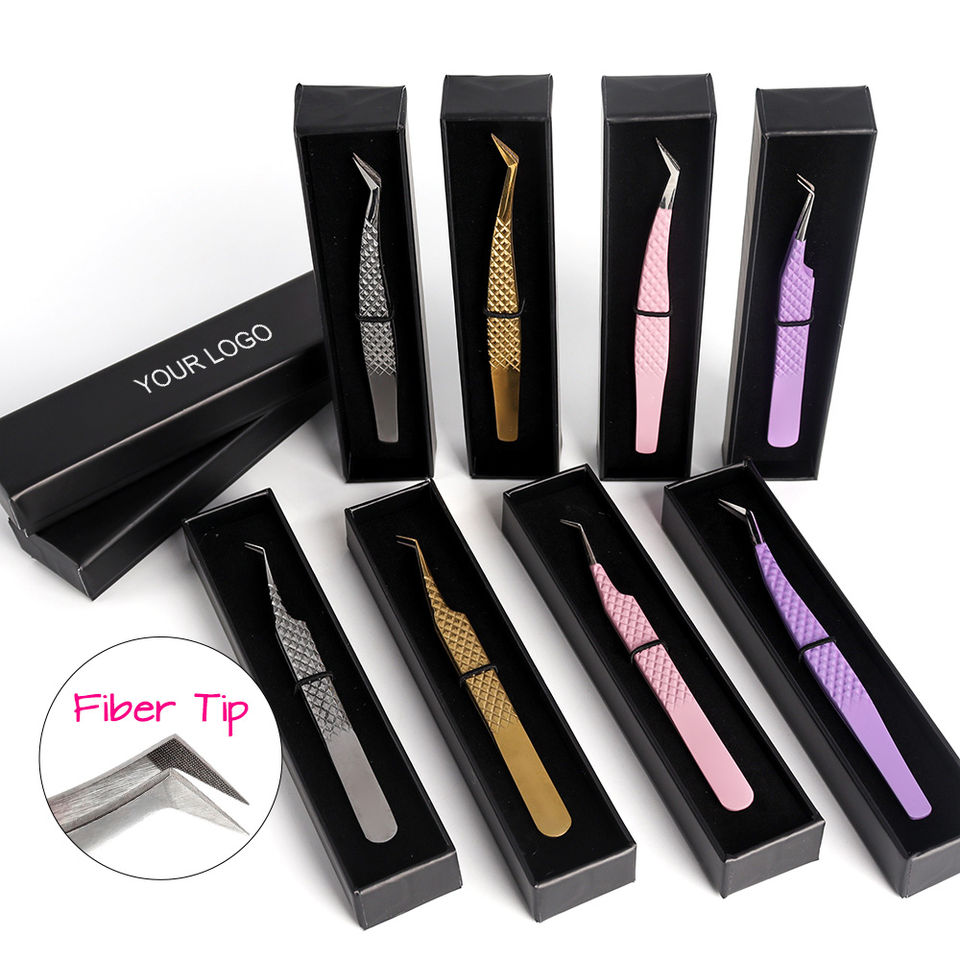 Wholesale Custom High Quality Stainless Steel Slanted Head Eyebrow Clip Eyelash Tweezers Set OEM Service Customized Plier