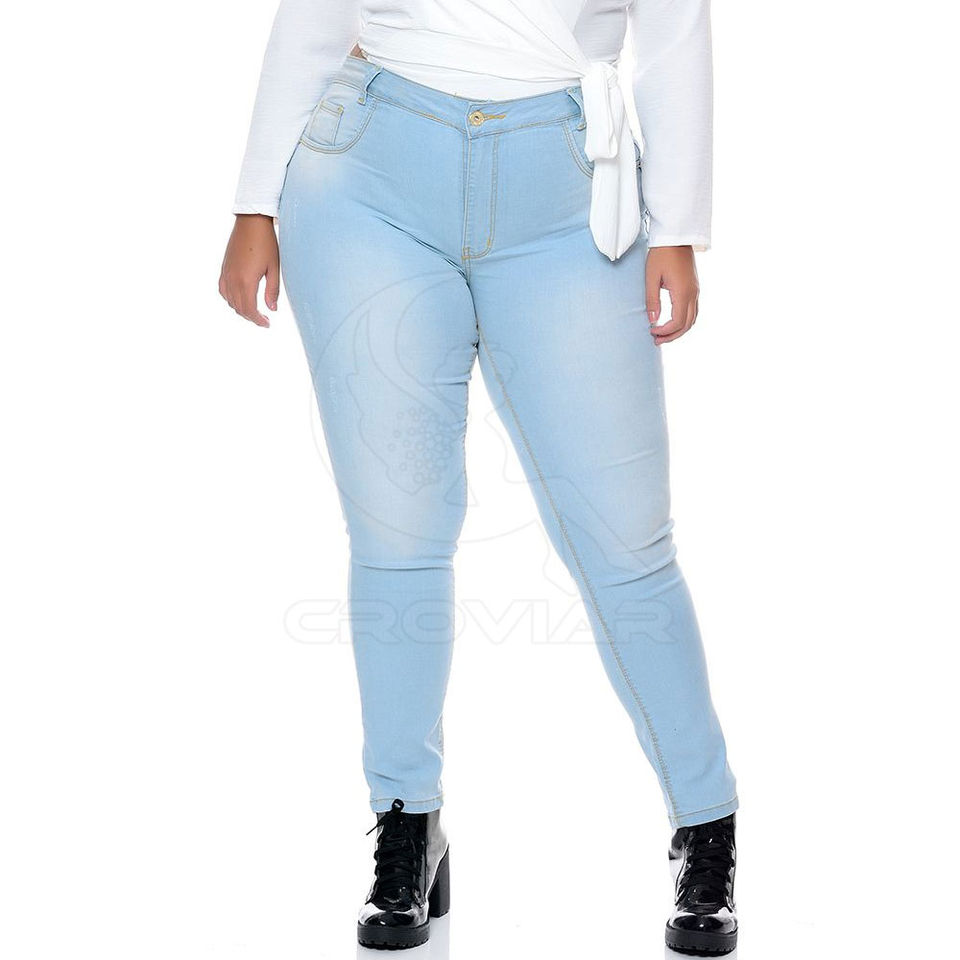 Wholesale Custom High Waist Distressed Ripped Stacked Elastic Stretch Jeans for Women Plus Size Options for Women