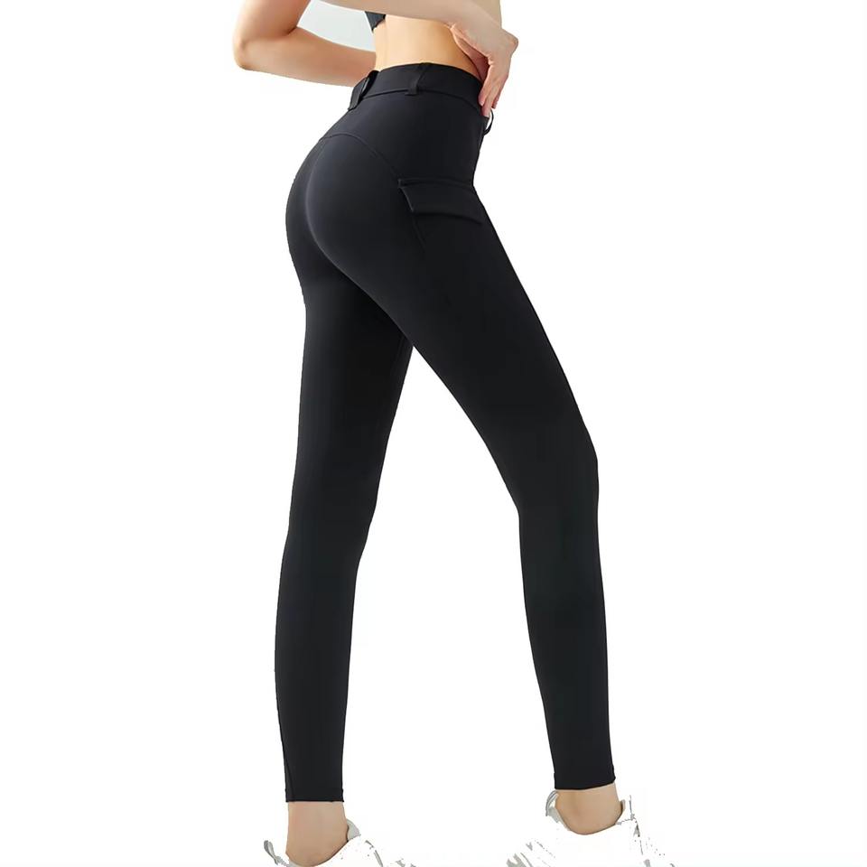 Women's High-Waisted Yoga Pants Custom Wholesale Soft Polyester Gym Fitness Leggings Drawstring Pocket Seamless Sexy Plus Size