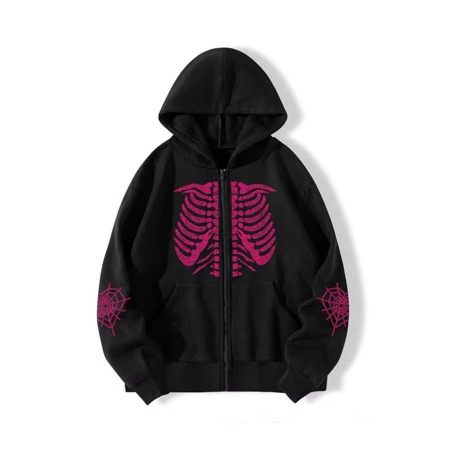 Wholesale Custom Hoodie High Quality Full Zip Up Rhinestone logo Hoodie Custom Color Rhinestone Hoodie Customized Design Hoodie