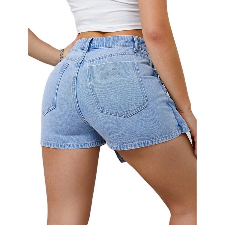Wholesale Custom Jean Shorts Irregular Slim Fit Wrapped Hip Denim Women Shorts Fashion Casual Button Shorts for Women