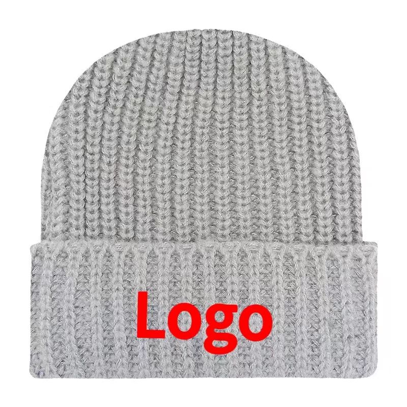 Wholesale Custom Knitted Beanie Hats: Big Logo, Fitted for Men, Warm Winter Wear