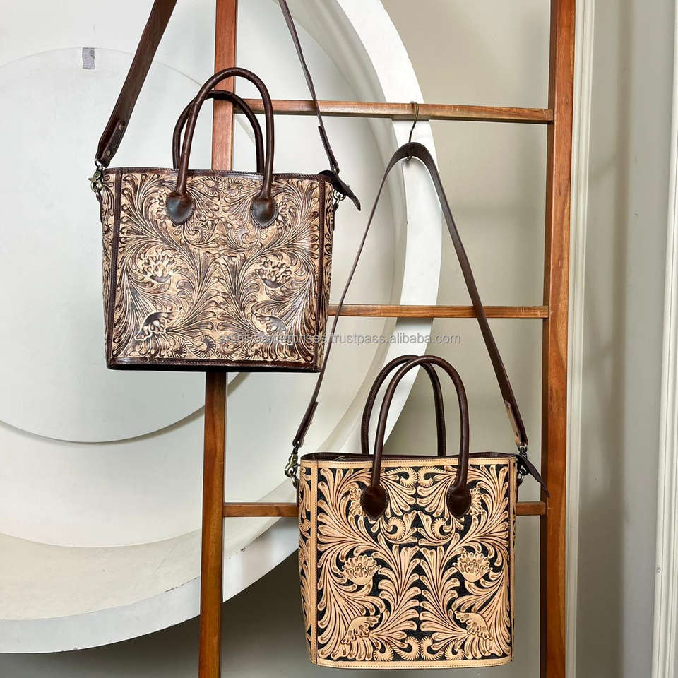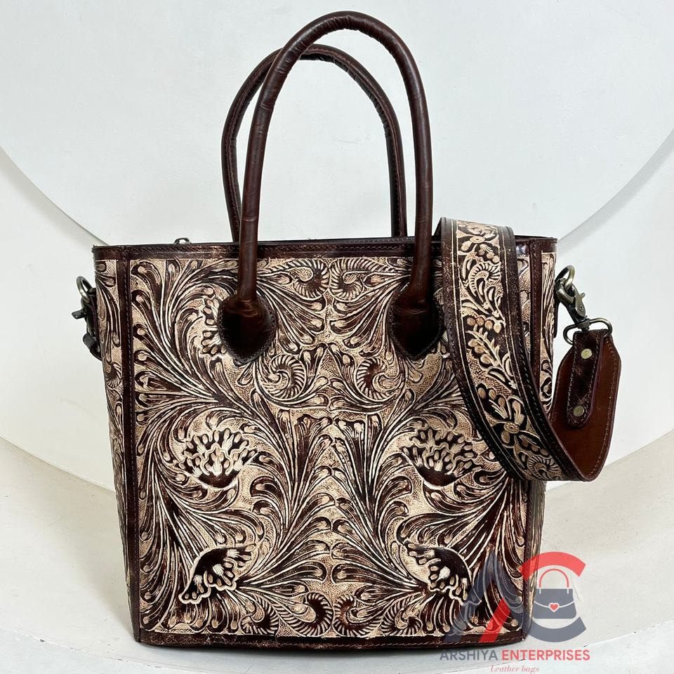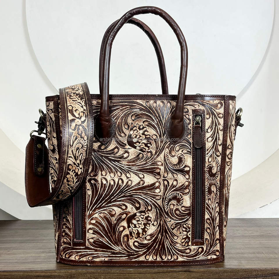 Product Name:Hand Tooled Leather Crossbody Tote Bag