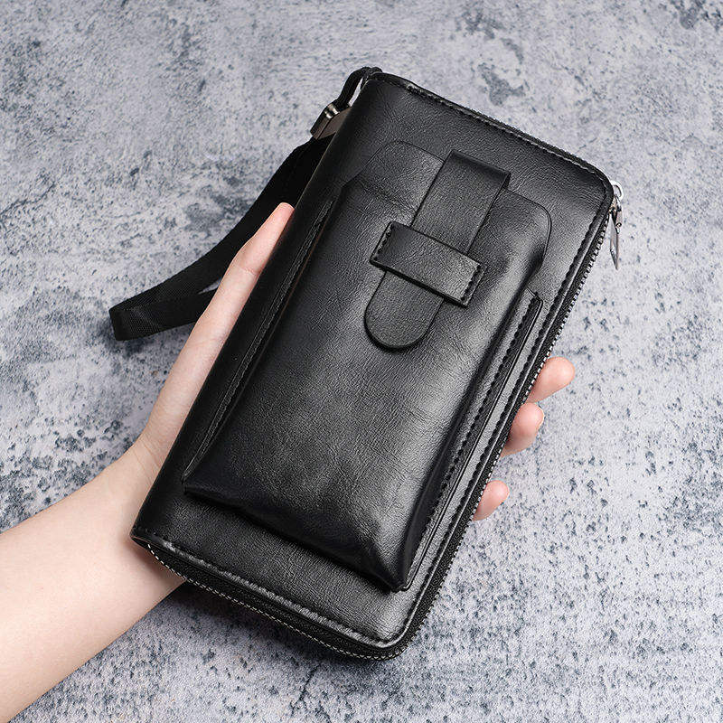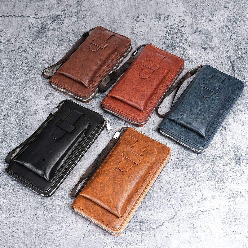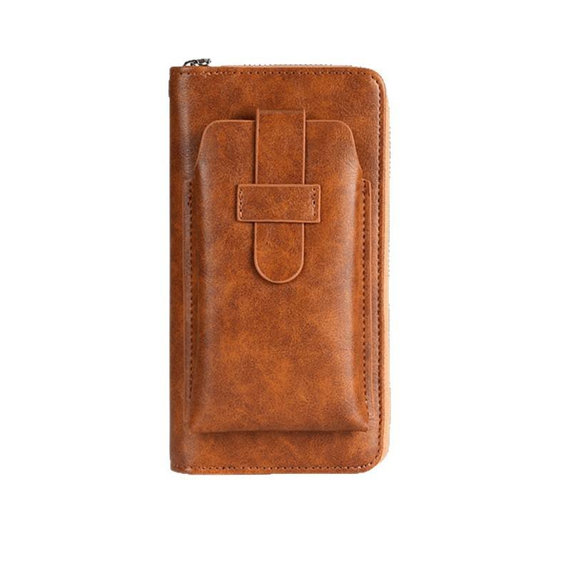 Wholesale Custom Large Capacity Phone Bag With Zipper Vintage Style PU Leather Coin Purse Multi Function Men's Card Wallet