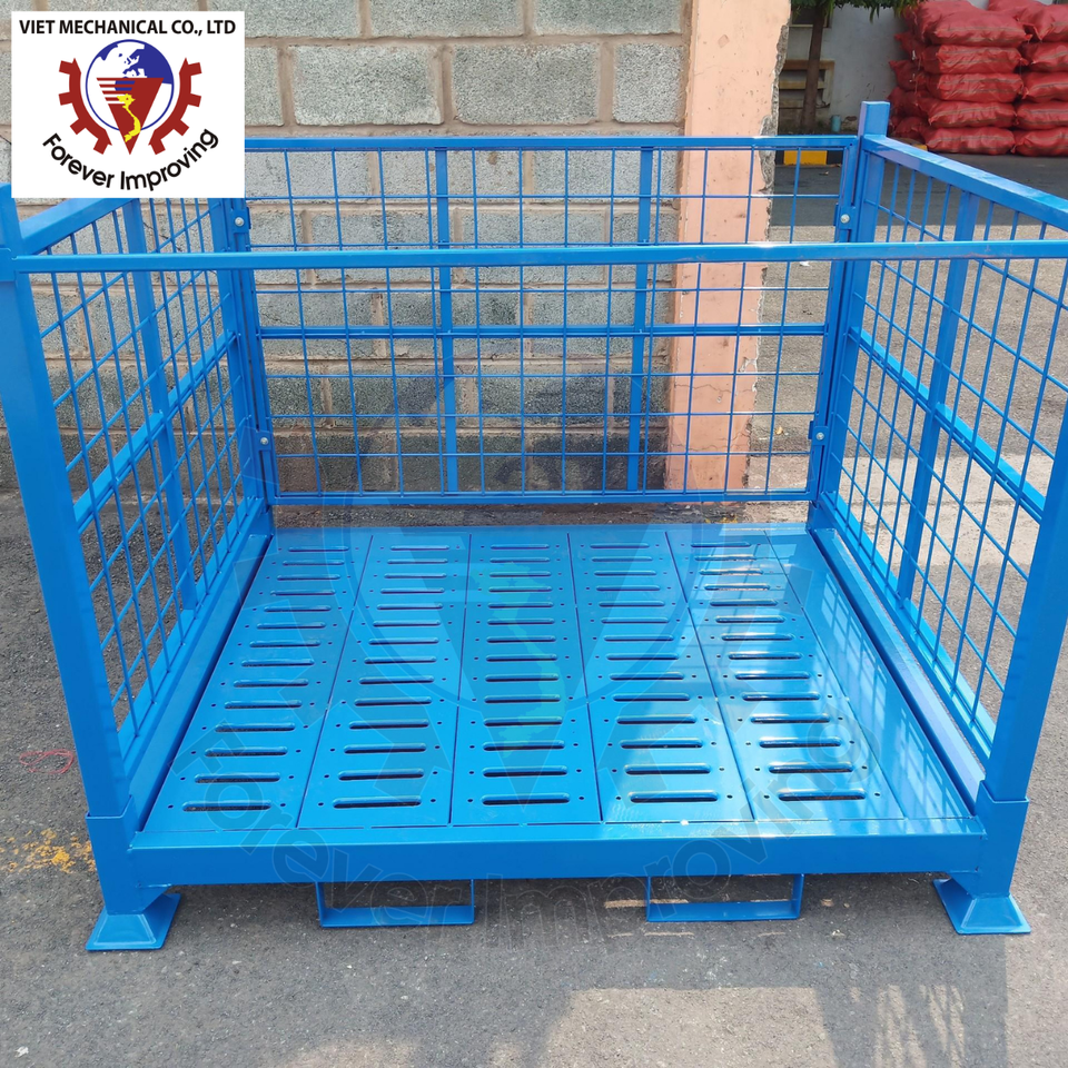 Wholesale Custom Large Steel Mesh Cage Foldable Industrial Container Wheels Pallet Box Storage Rack Shelves Corrosion Protection