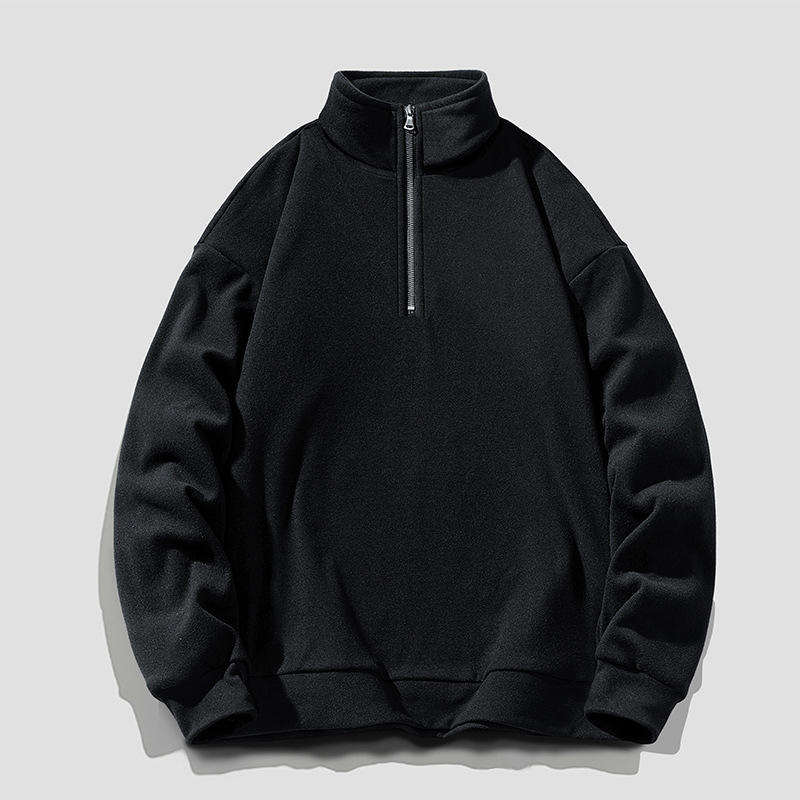 Wholesale Custom Logo 1/4 Quarter Zip Casual Sportswear Winter Thick Plain Polyester Men's White Sweatshirt Front Knitted Fabric
