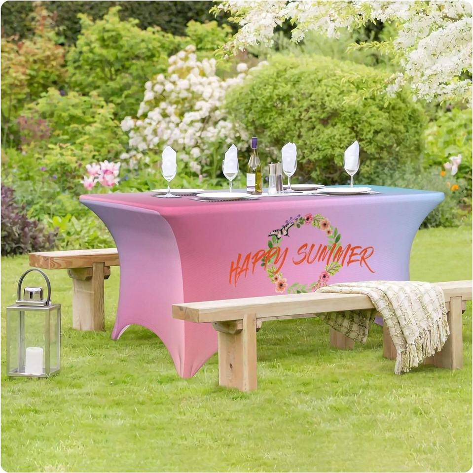 Wholesale Custom Logo 6ft Rectangular Banquet Stretch Tablecloth Woven Spandex Wedding High Bar Waterproof Christmas Durable