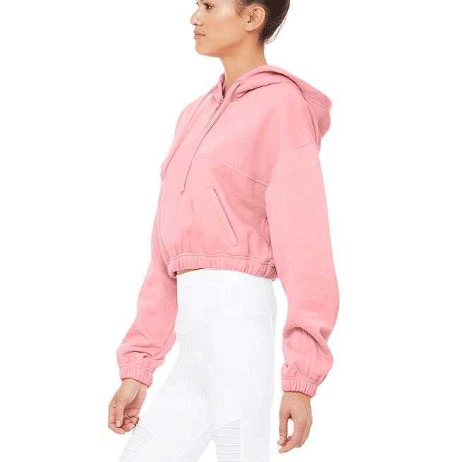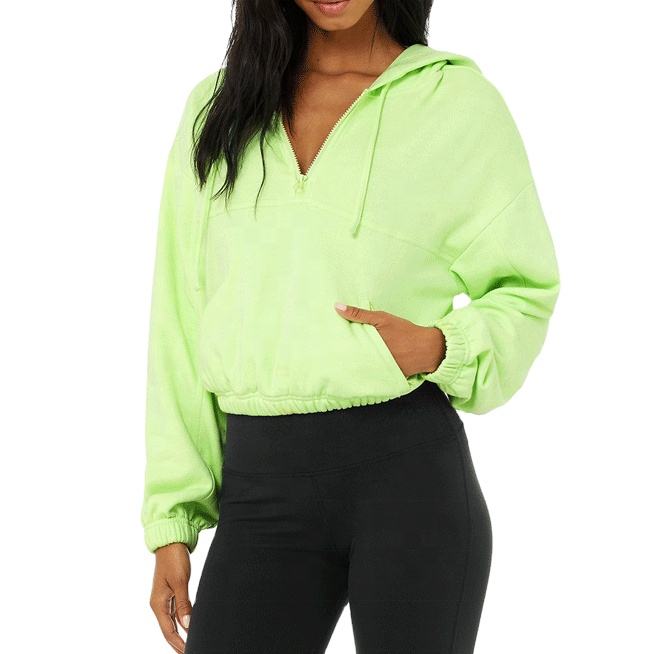 Wholesale Custom Logo 95% Cotton 5% Spandex Women's Crop Top Hoodie Hooded with Front Logo and Drawstrings