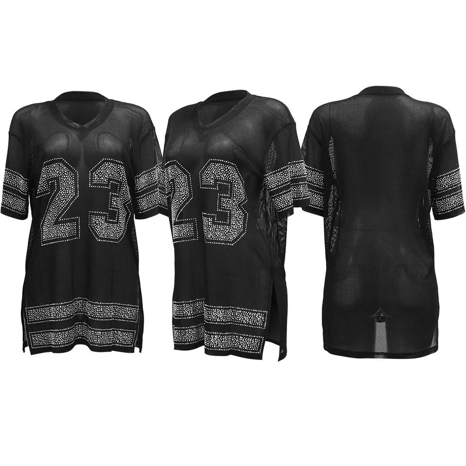 Wholesale Custom Logo American Football Jersey for Women Long Mesh Slit Top with Rhinestones Sexy Soccer Wear for Girls