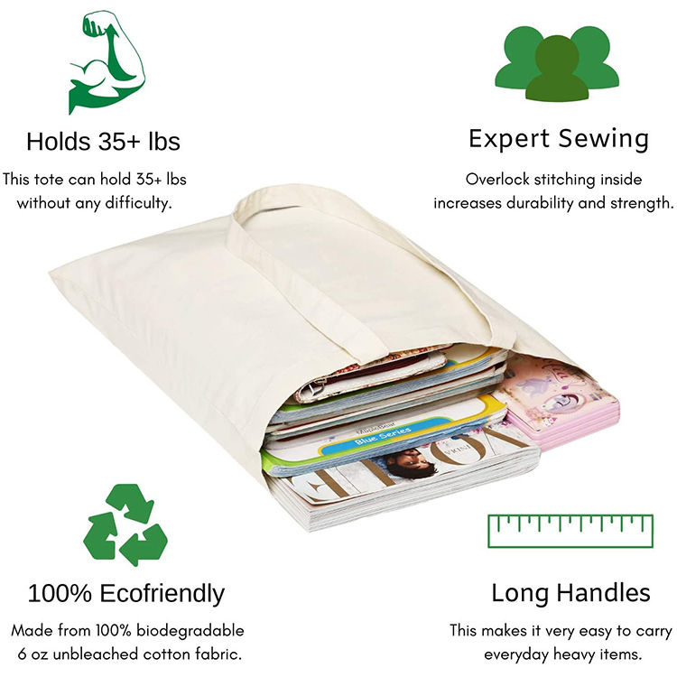 Wholesale Custom Logo Cotton Canvas Folding Eco Recycled Reusable Silk Screen Printed Women Casual Shopping Plain Large Tote Bag