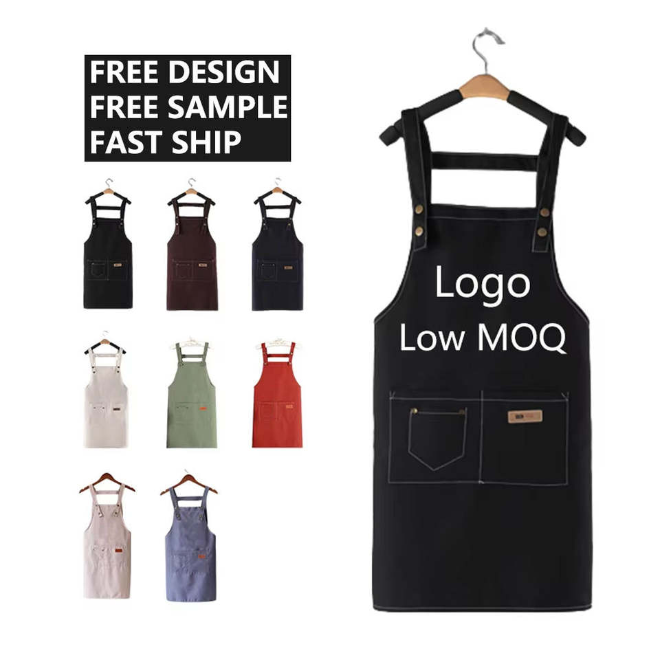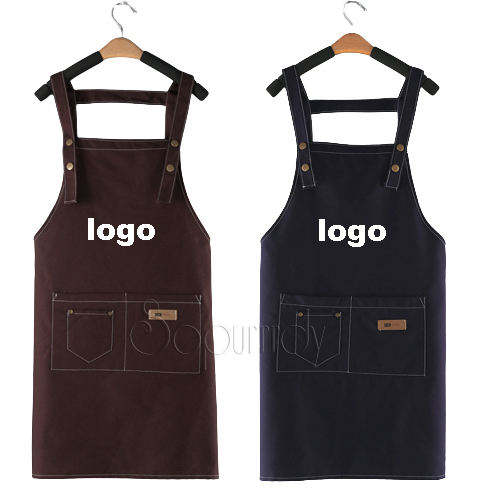Wholesale Custom Logo Cotton Canvas Waterproof Chef Cooking Aprons With Pockets for Cafe Restaurants Kitchen Bbq Apron