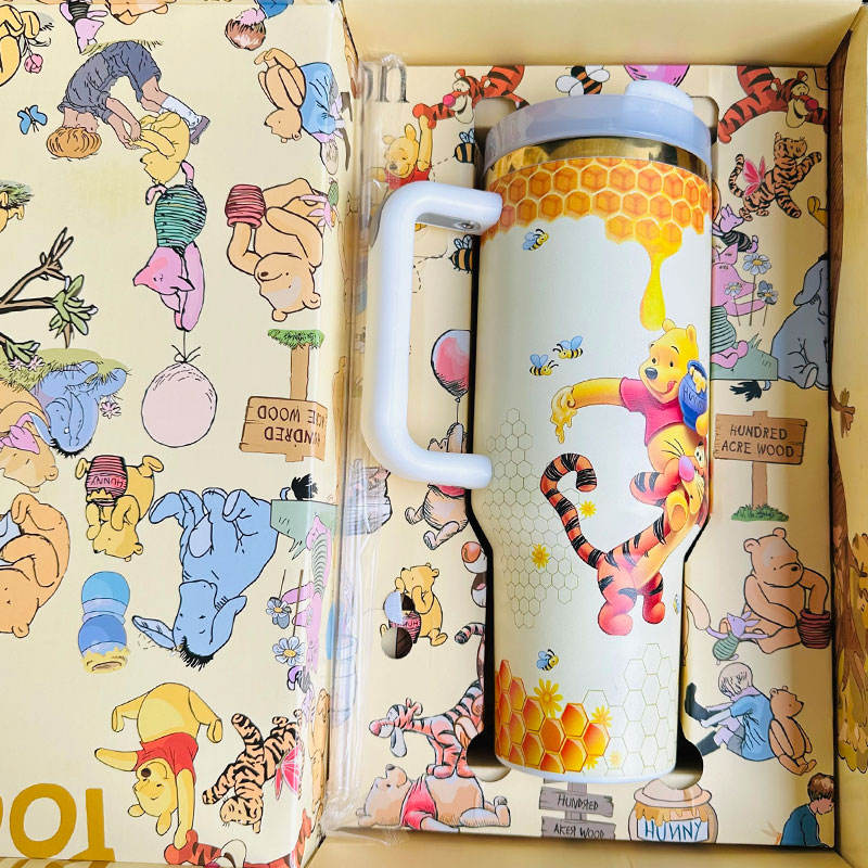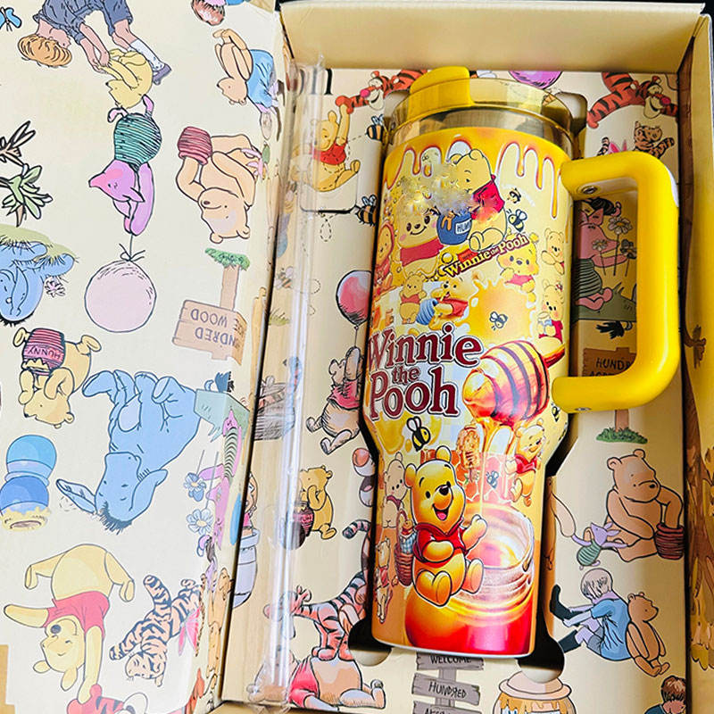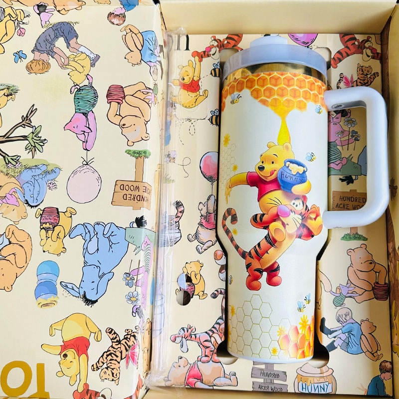 Wholesale Custom Logo Creative Cute Cartoon Bear Cup Double Wall Stainless Tumbler Tea Coffee Mug with Straw