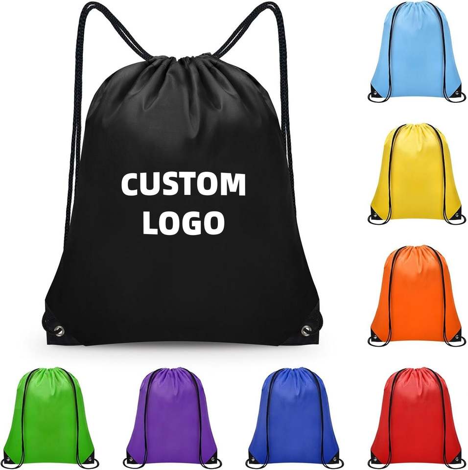 Wholesale Custom Logo Drawstring Bags Polyester Sports Gym Backpacks for Promotions