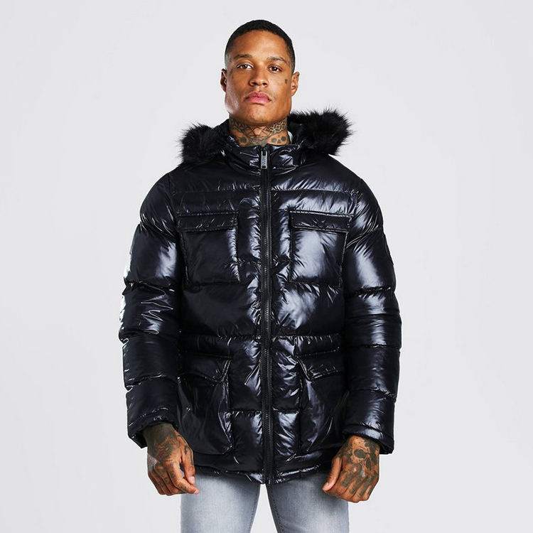 Wholesale Custom Logo Fashion Down Filling Outwear Jacket Plus Size Shine Puffer Jacket Men
