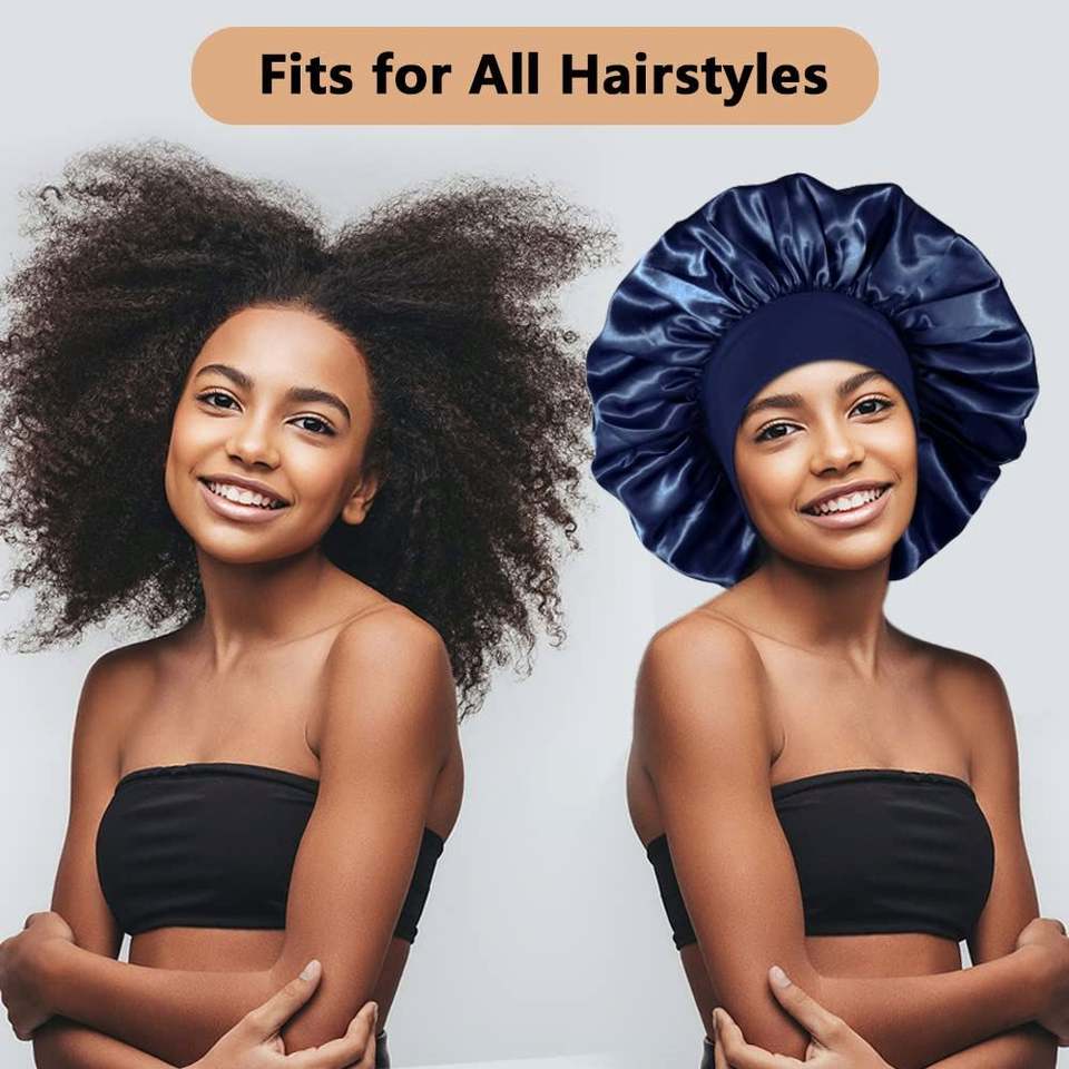 Wholesale Custom Logo Hair Accessories Elastic Band Large Size Wide Band Hair Cover Bonnet Satin Sleep Cap Hair Dryer Bonnet