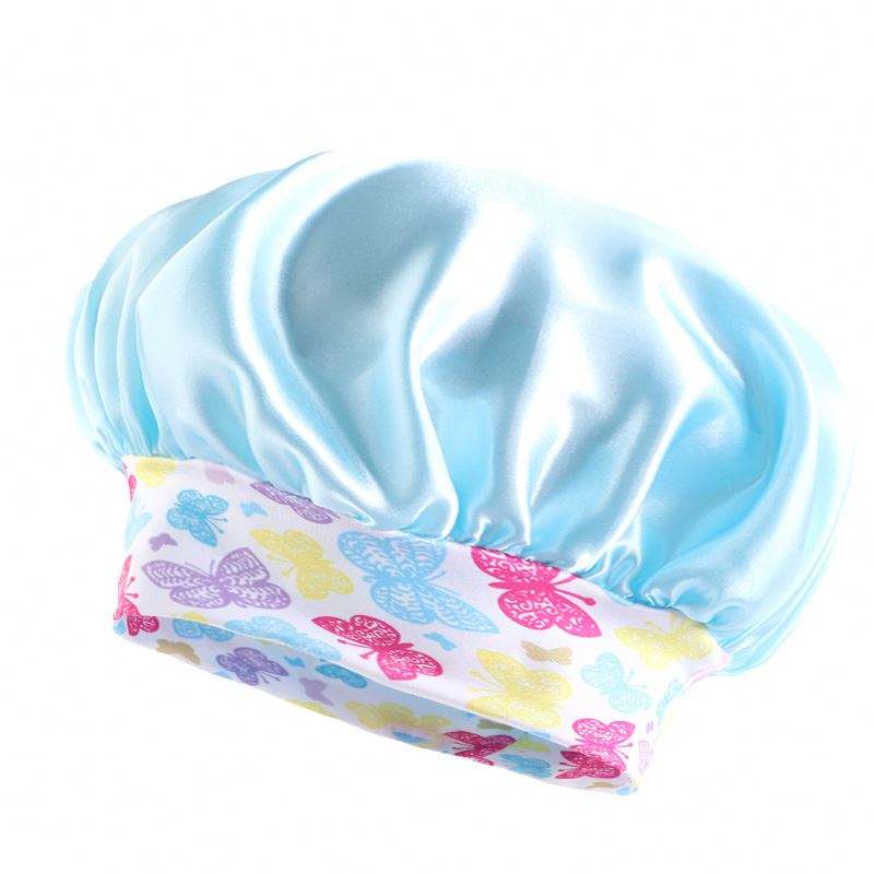 Wholesale Custom Logo Hair Accessories Kids Baby Stain Bonnet Lovely Girl Sleep Printing Stretchy Band Satin Bonnets for Kid
