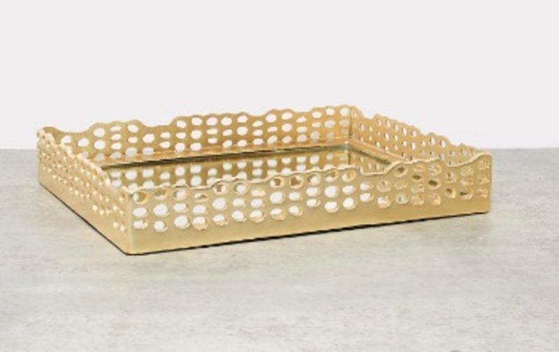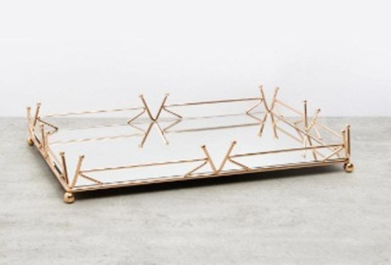 Luxury Crystal Mirror Serving Tray Set Metal Decorative Display Trays with Heart Design for Coffee Table Wedding Party Dining