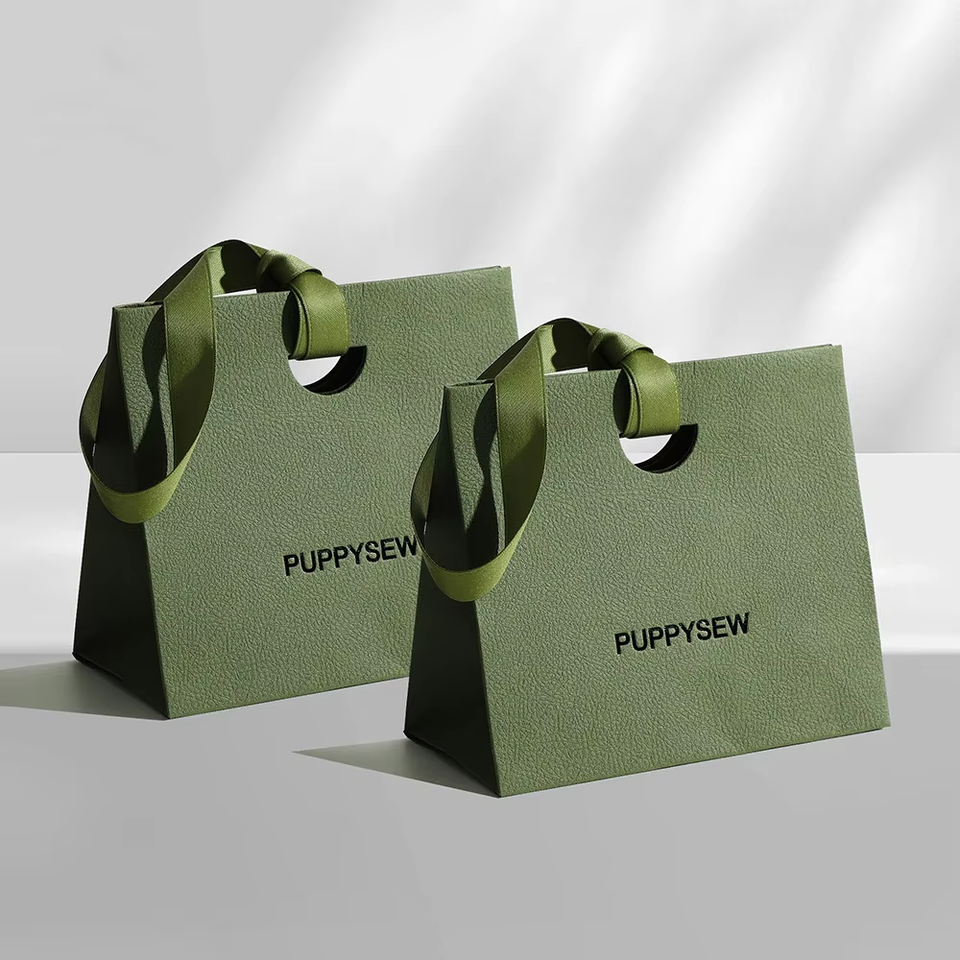 Wholesale Custom Logo Biodegradable Kraft Paper Jewelry Packaging Shopping Bag with Drawstring Handle and Ribbon Accessories