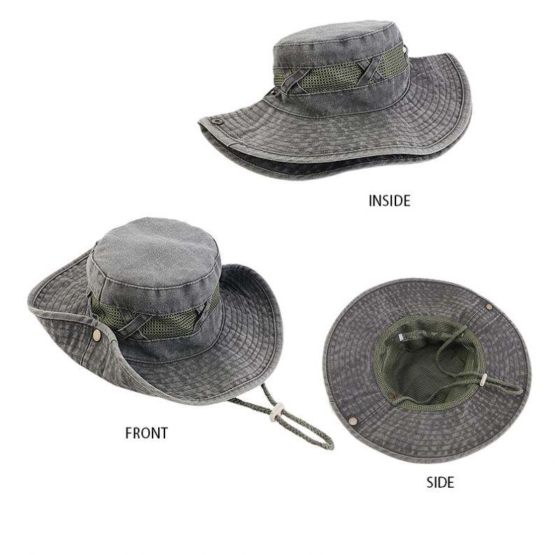 Wholesale Custom Logo Net Breathable Retro Washed Cotton Outdoor Hat Elastic Strap Bucket Fishing Hiking Climbing Women Men