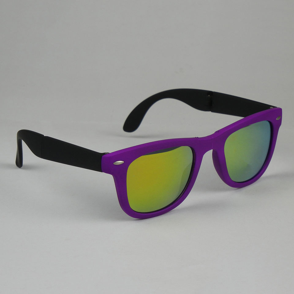 Unisex Compact Pocket Folding Sunglasses UV400 Mirror Lens Purple Black Two Tone Custom Logo Wholesale Blue Party Yellow Red PC
