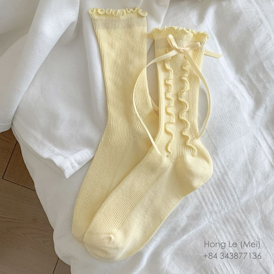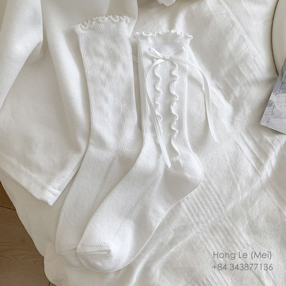 Wholesale Custom Logo Plaid Crew Women's Socks 100% Cotton Knitted Cute Lace Ruffle Pilates Yoga Anti-Slip Breathable Daily