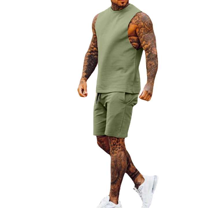 Wholesale Custom Logo Plus Size Men's T-shirts Summer Gym Sleeveless T-shirt Sets 2 Pieces T-shirt Short Set Fitness Sets