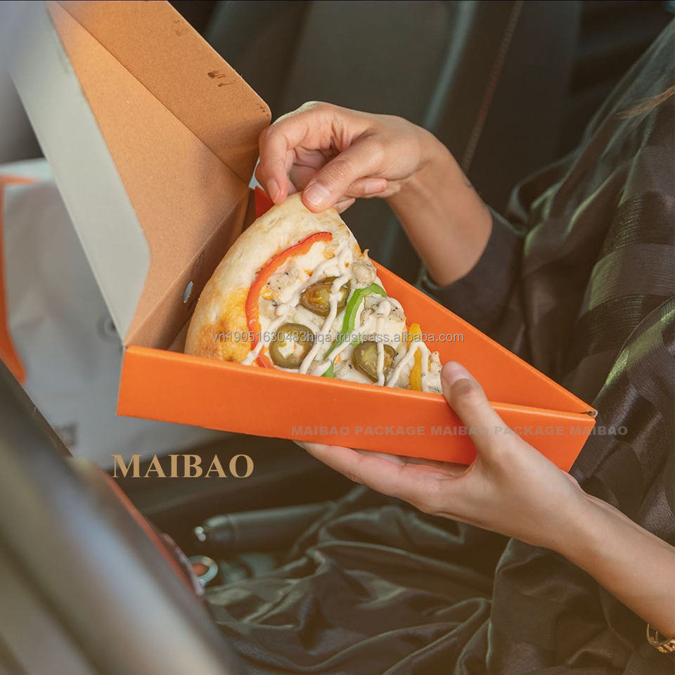 Wholesale Custom Logo Printed Kraft Paper Pizza Slice Boxes Single Slice Triangle Container