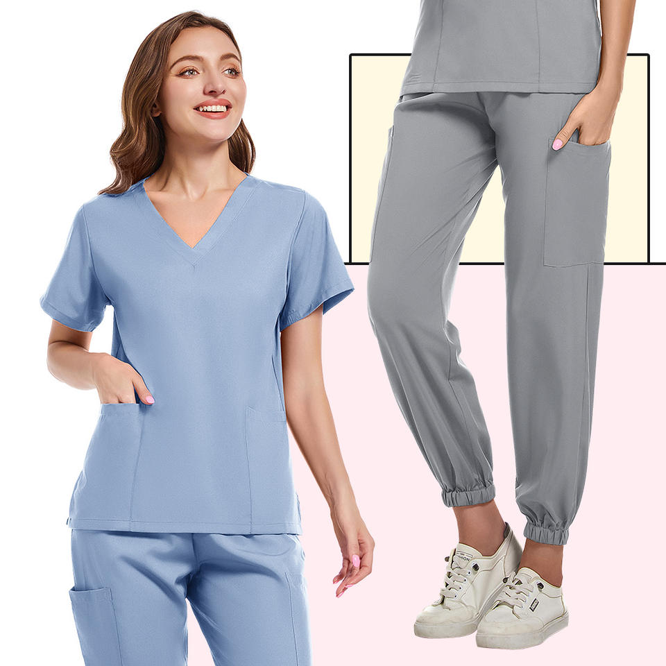 Wholesale Custom Logo Scrub Sets Stretch Nurse Hospital Scrubs Suit Tops Nursing Sets Medical Hospital Uniforms for Women Female
