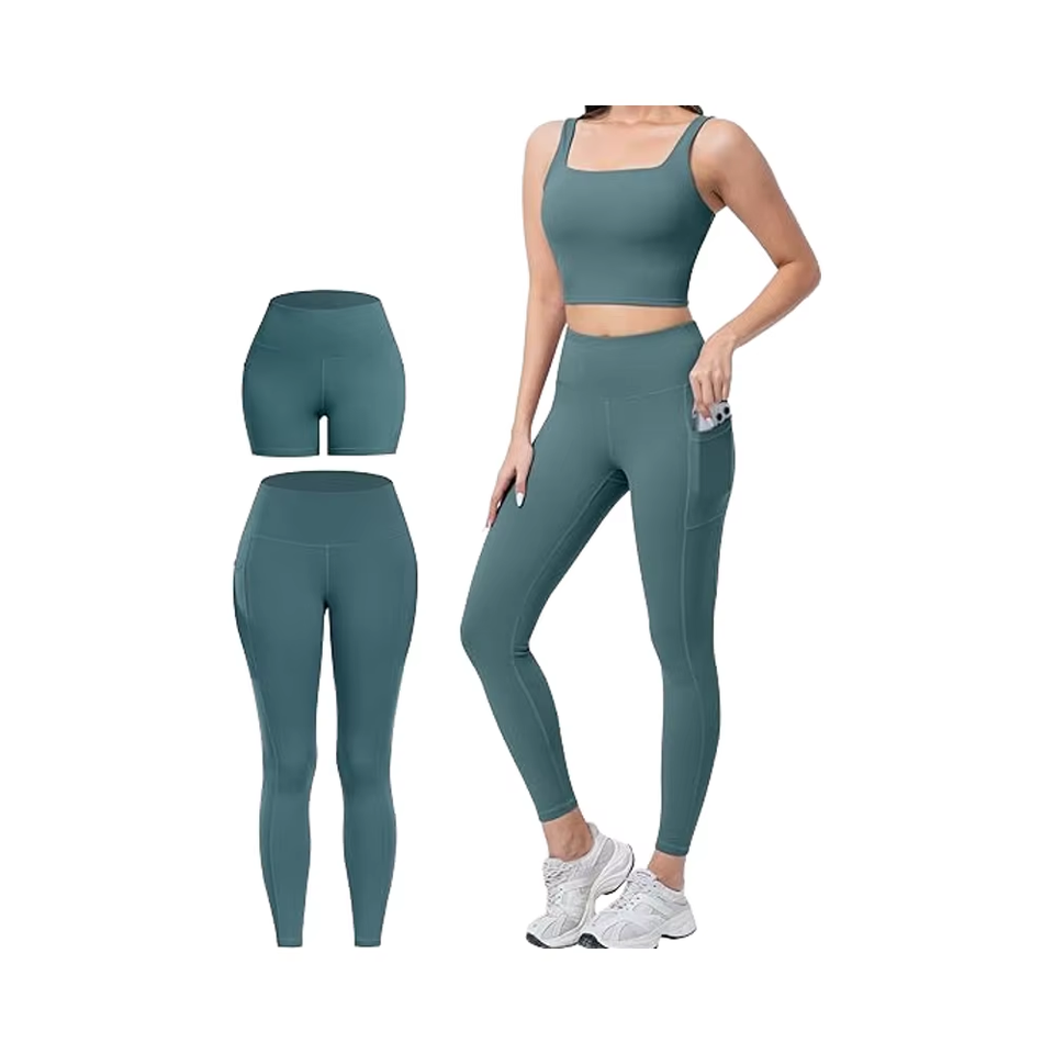 Wholesale Custom Logo Seamless 3-Piece Women's Gym Yoga Sets Ribbed Activewear Outfit Fitness Sports Bras