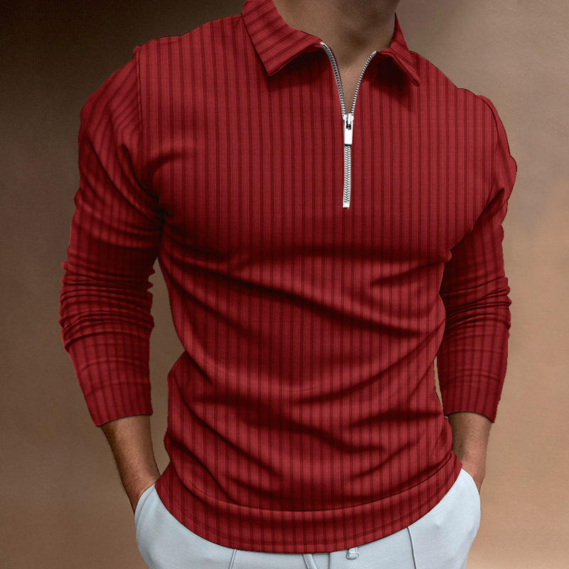Wholesale Custom Logo Solid High Quality Cotton Blend Zip up Polo Strip Casual Mens T-shirt for men