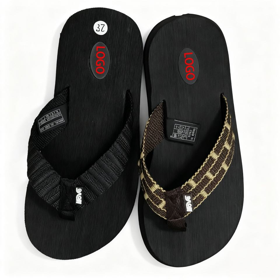 Wholesale Custom Logo Wide Strap Flip Flops Men Comfortable Beach Sandals Anti Slip Black Rubber Slippers Manufacturer Bulk