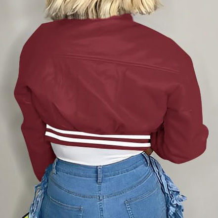 Wholesale Custom Logo Women's Vintage Style Cropped Varsity Jacket New Fashionable Embroidered Leather Jacket Cotton for Outdoor