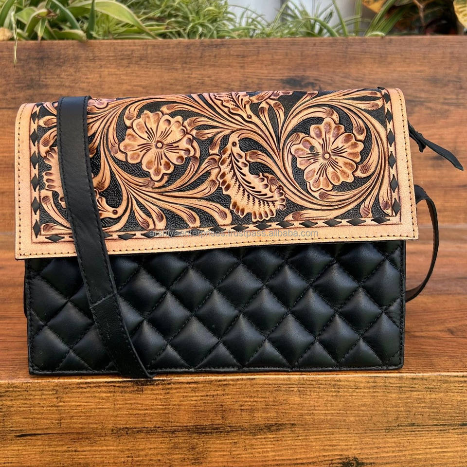 Product name:Hand Tooled Quilted Leather Crossbody Bag