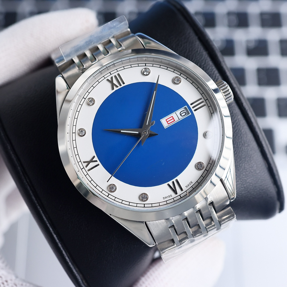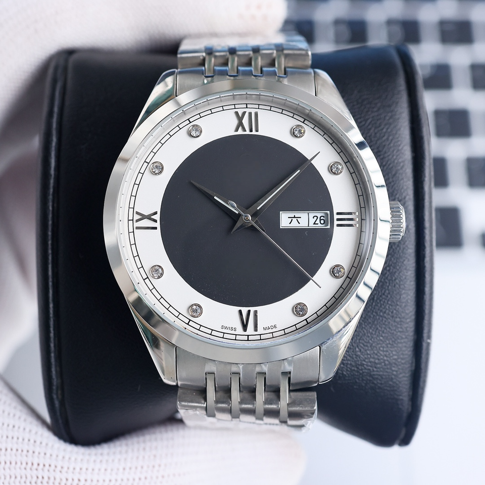 Wholesale Custom Luxury Men's Watch - Swiss Made Silver Stainless Steel Bracelet, Diamond Markers, Roman Numerals
