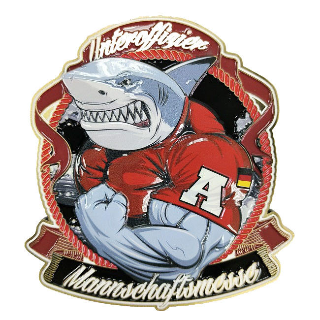 Wholesale Custom Luxury Muscular Shark & German Inspired Motif Enamel Pin with Screw and Nut