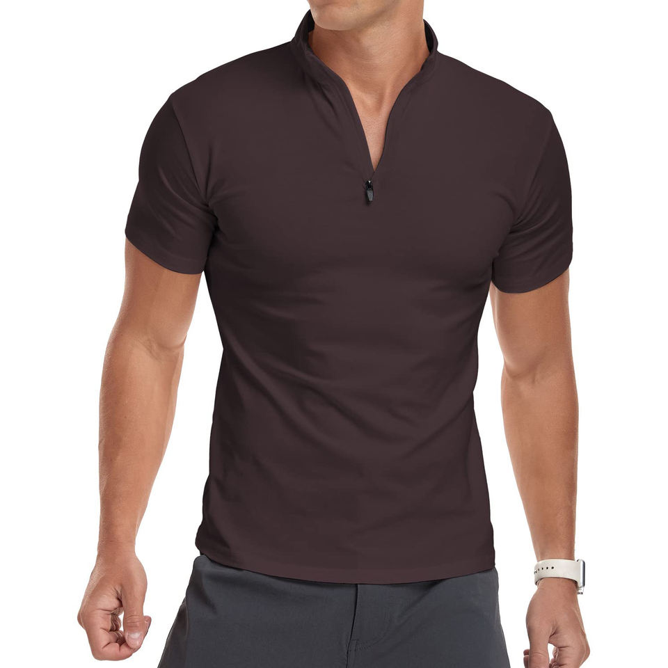 Wholesale Custom Made Solid Colors Quarter Zipper T-Shirt Short Sleeve Zip up Lightweight Casual Shirts Quarter Zip Men Shirts