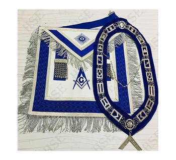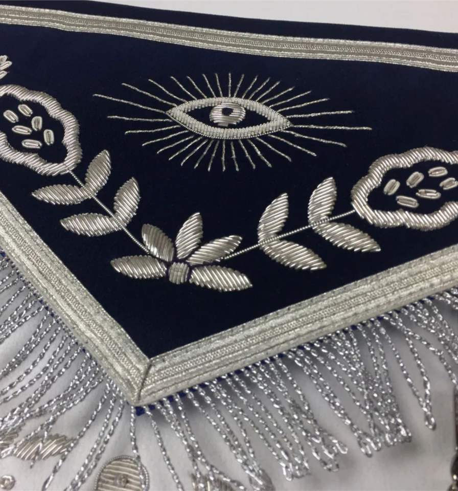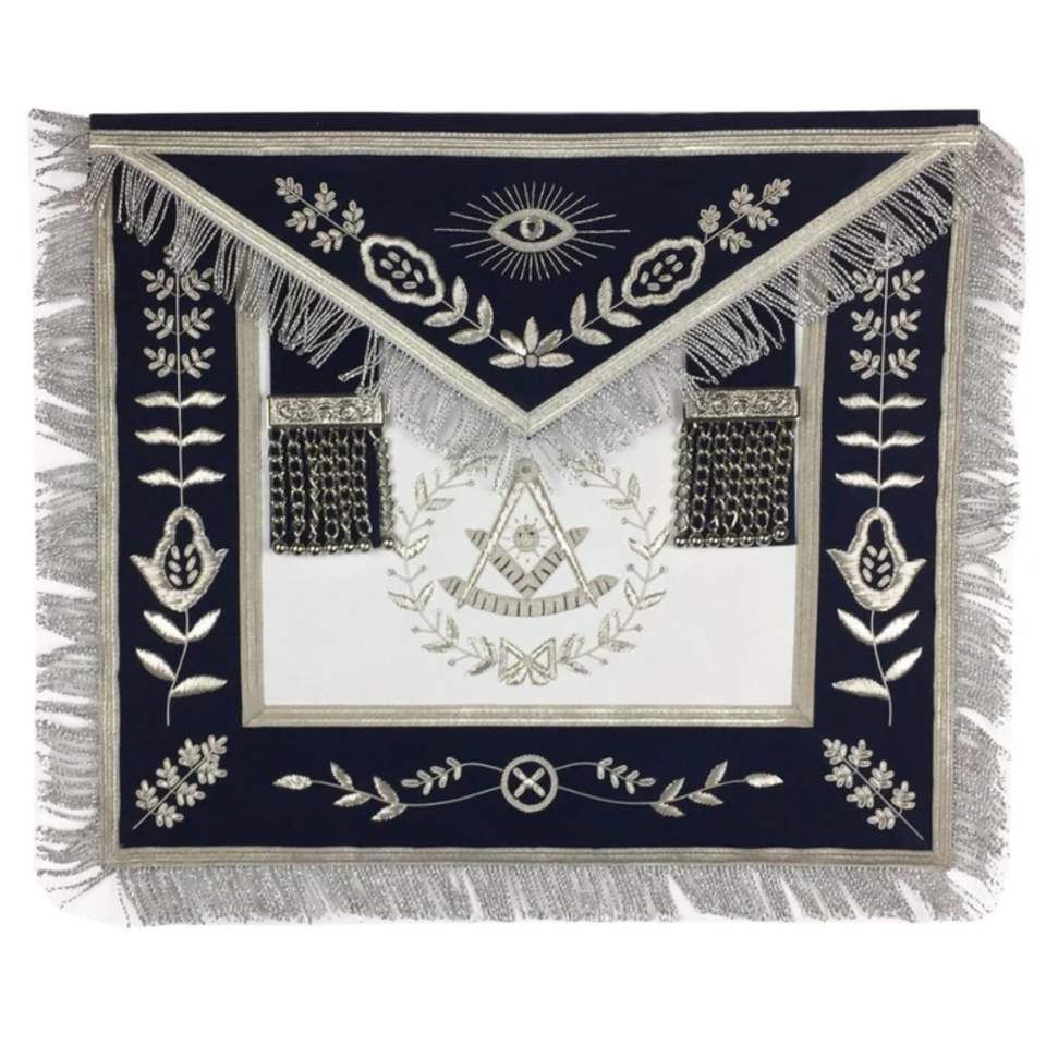 Wholesale Custom Master Masonic Regalia Apron Elegant Silver Embroidery Square Pattern on Royal Blue Fabric White Lodge APRON
