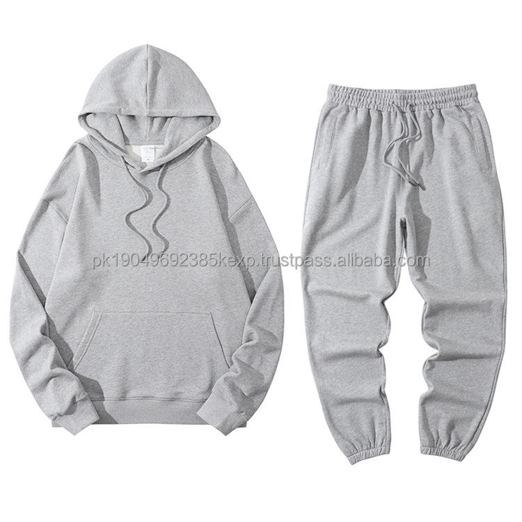 Wholesale Custom Men Plain Sweat Suits French Terry Tracksuits Sweatsuits Unisex Men's Sportswear 100% Cotton Hoodie Set