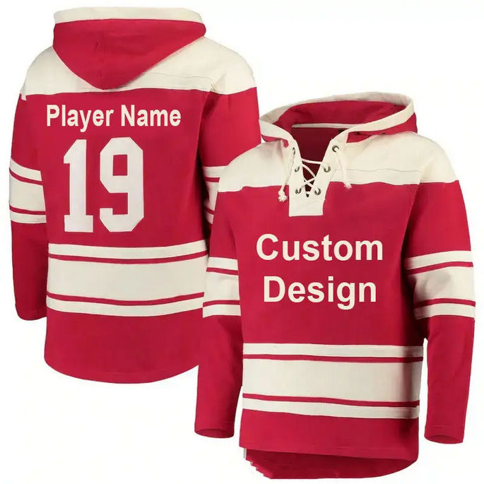 Wholesale Custom Men Winter Ice Hockey Pullover Hoodie Polyester Fabric with OEM Logo Service top for Team Uniforms
