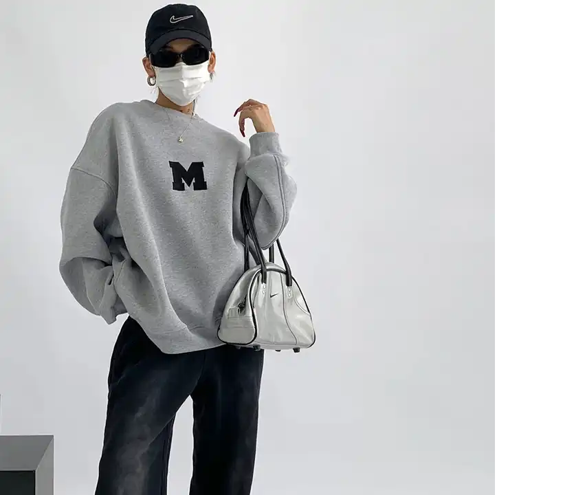 Wholesale Custom Men's 420G Puff Print French Terry Sweatshirt Sweatpants Set Oversized Mock Neck Washed Vintage Knitted Fabric