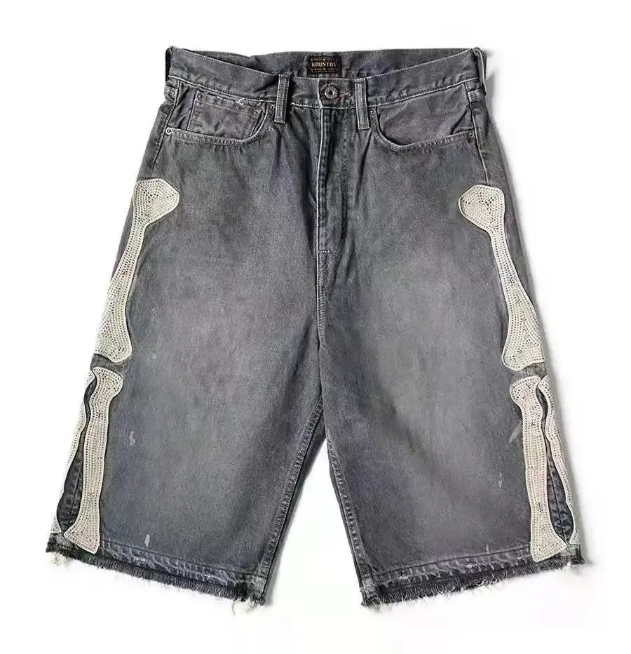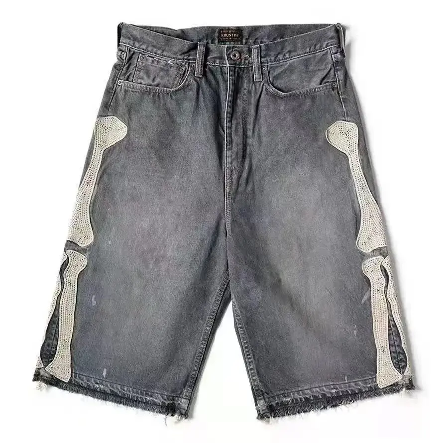 Wholesale Custom Men's Baggy Jorts Summer Streetwear Short Pants Men Distressed Embroidery Patch Denim Jeans Shorts